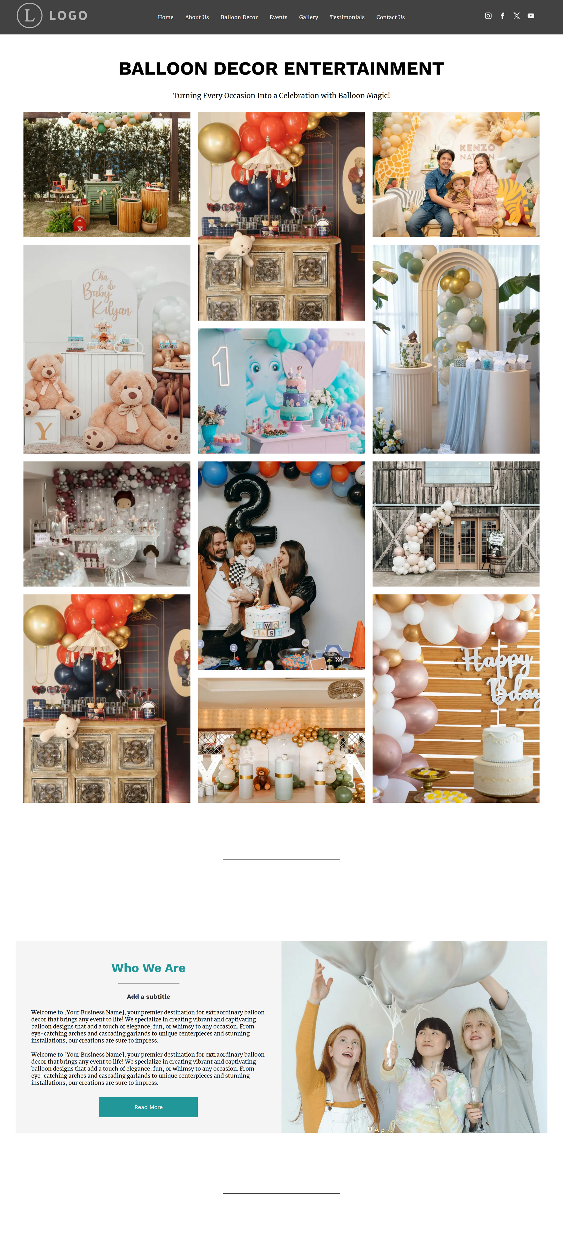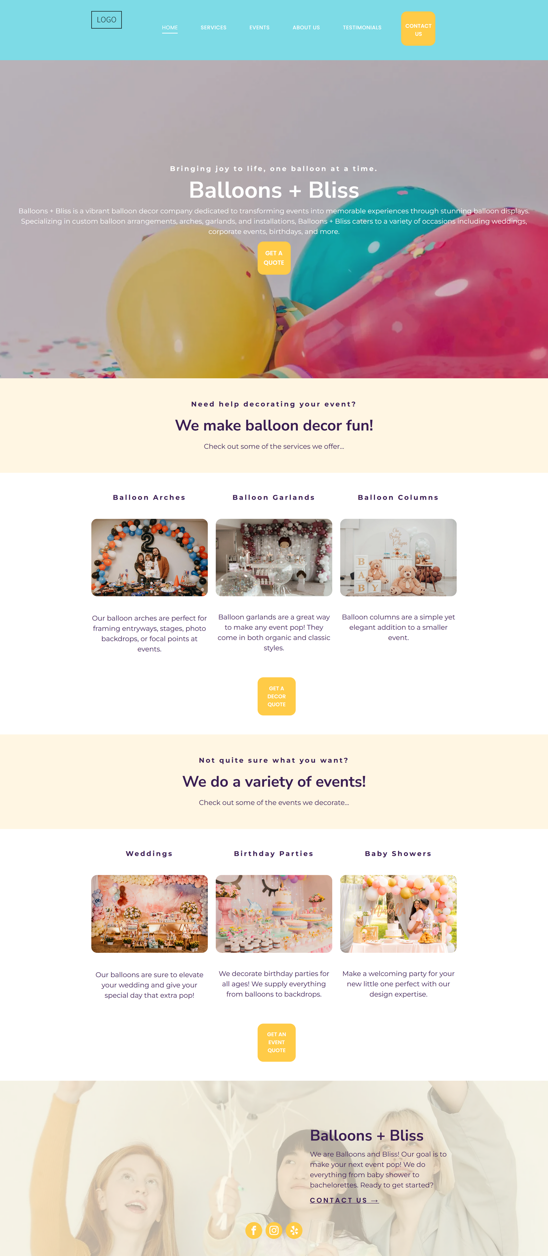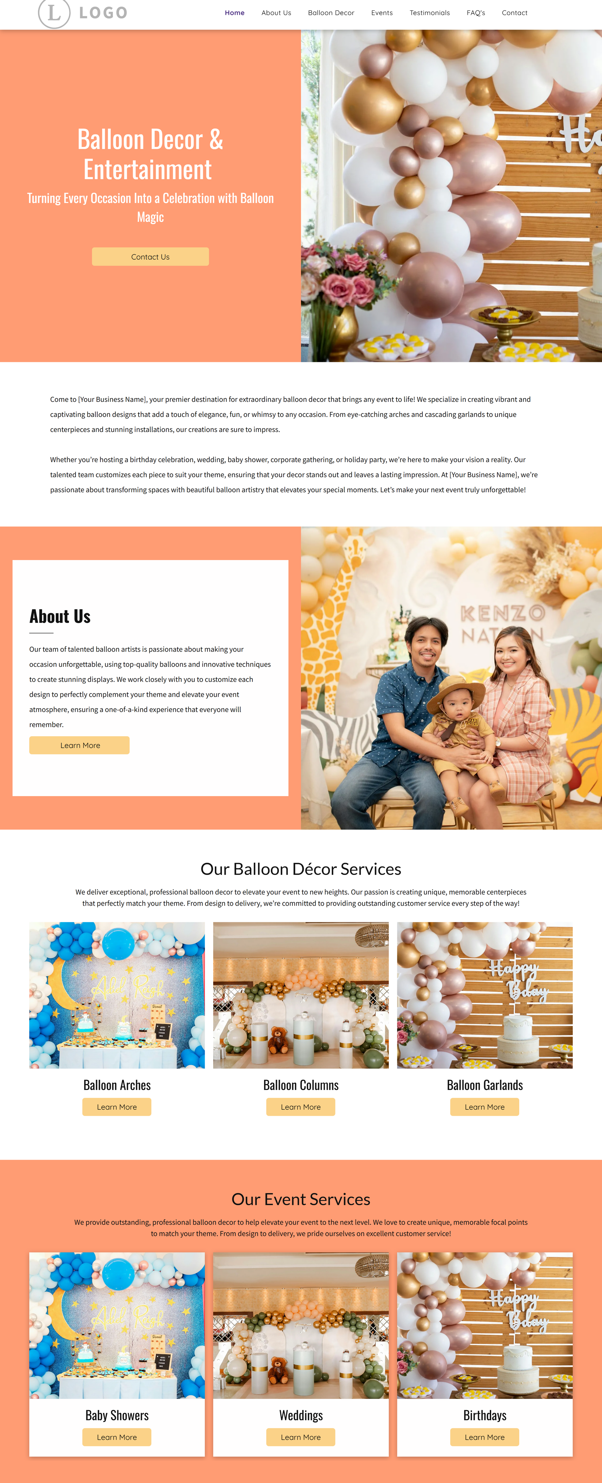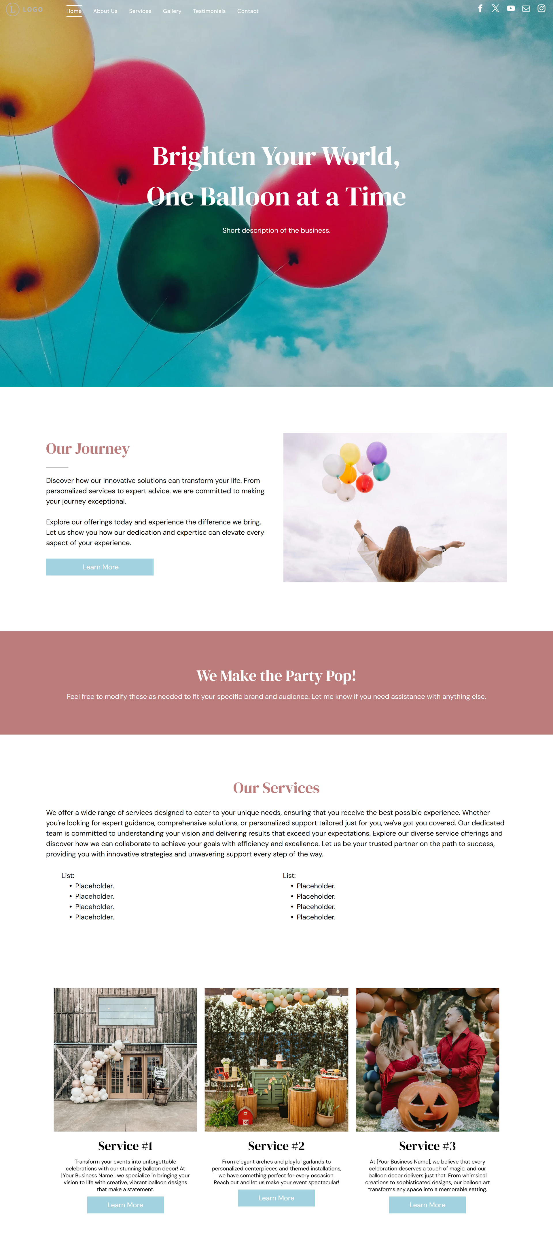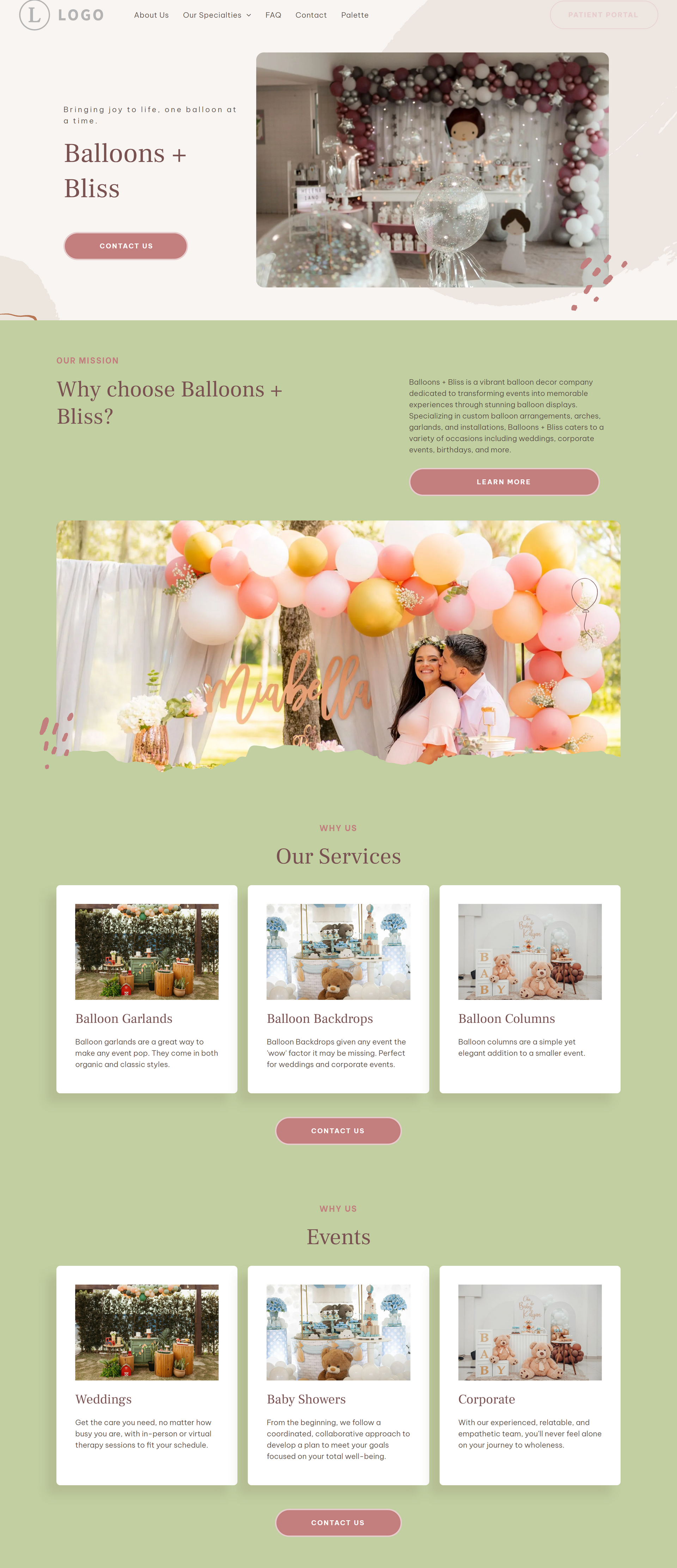 All subscriptions come with at least a 1 page website built by the Balloon Suite team. We can support everything from these templates to a fully custom design based on your branding guide. If you need something specific please let us know so we can provide options.